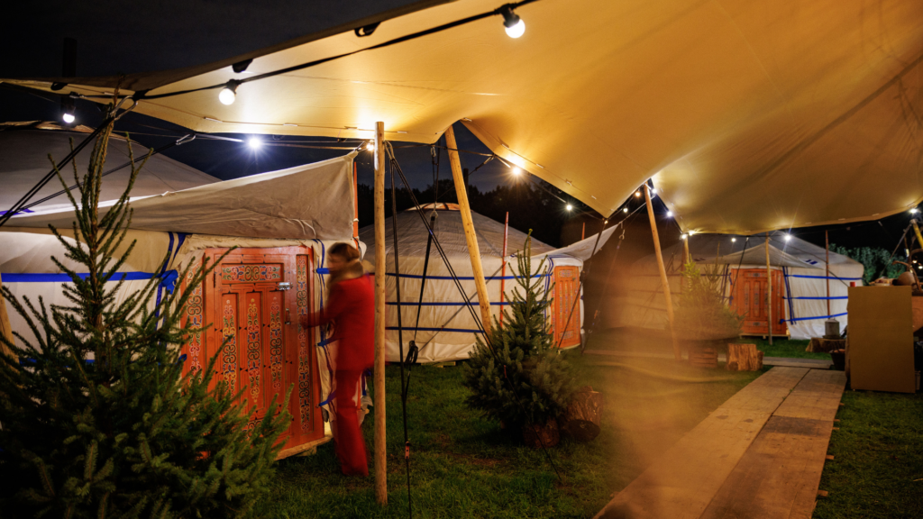 Maximale capaciteit (4 yurts): 14 personen per yurt – 56 personen in totaal
